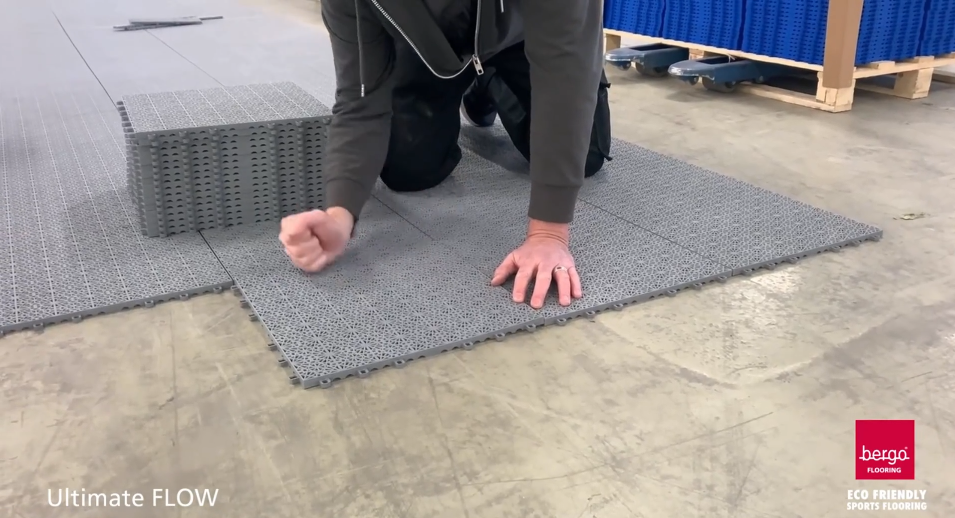 The installation of the Bergo Ultimate FLOW is generally quite straightforward. You simply connect the tiles and secure them in place by tapping them down, either with rubber hammer, hand or fot. However, it's important to consider several factors before proceeding with the installation, such as the subground on which the flooring will be installed.